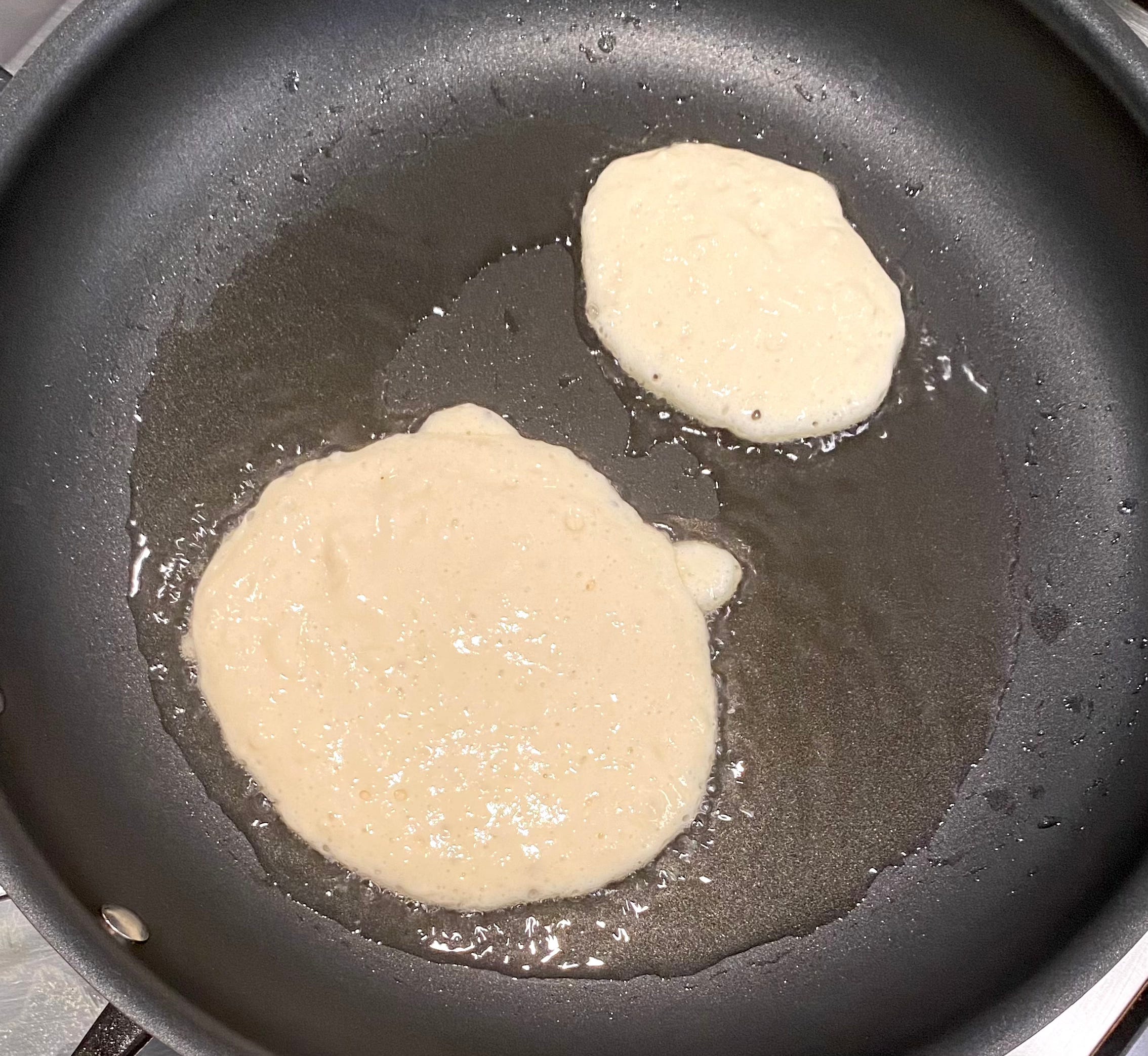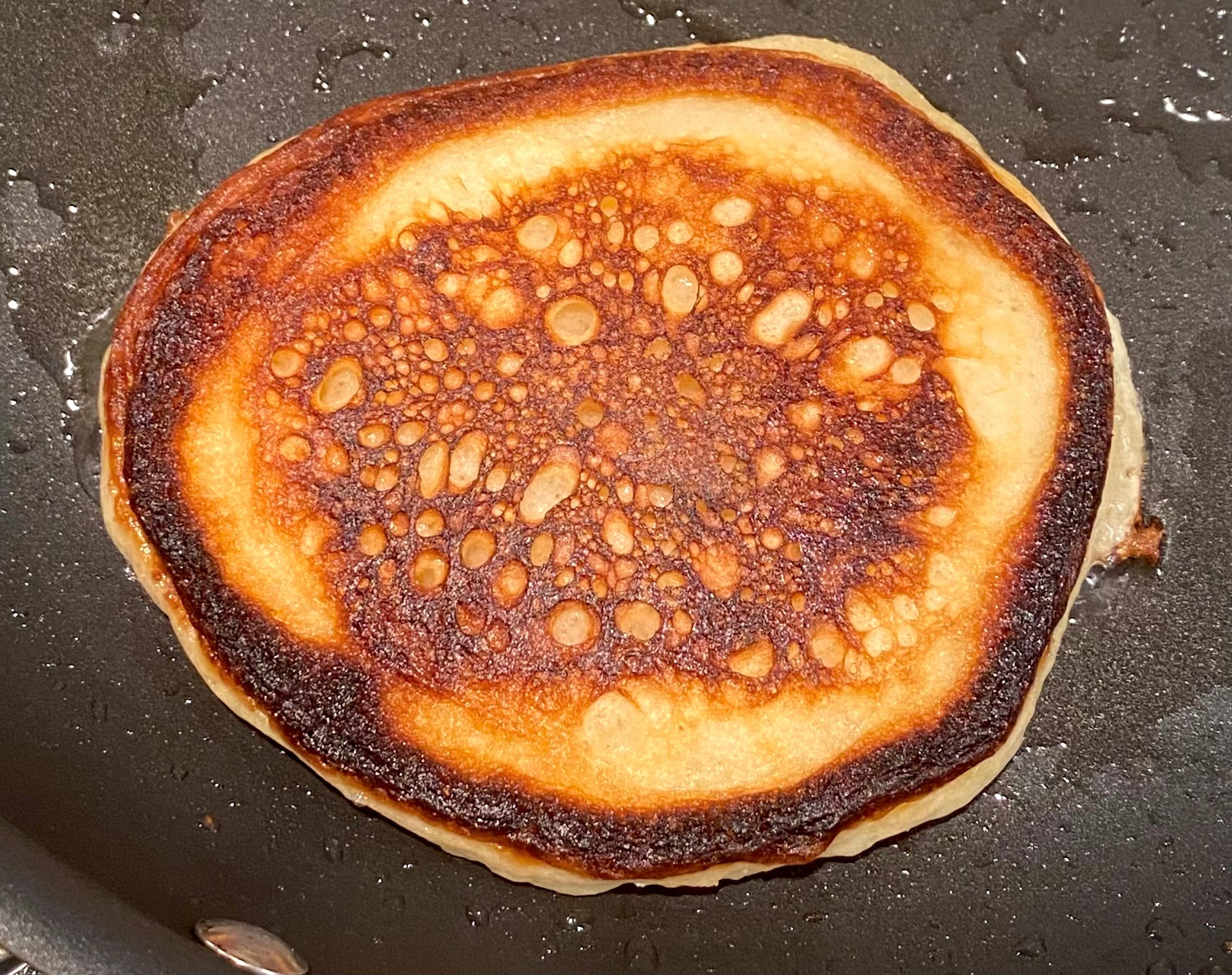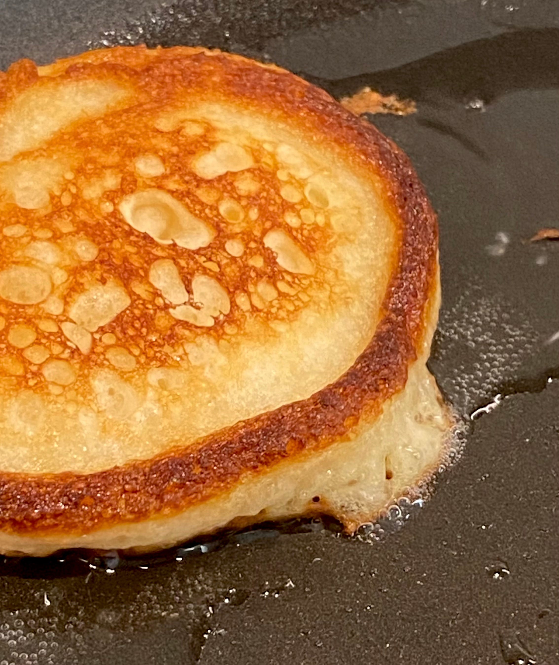 “But Ben,” you surely are saying, “what about all that delicious butter flavor? You’re just going to disregard it like a craven ghoul?” Welp… yes? For those having butter FOMO, you can always do what Ina Garten does: add butter to the oil. I usually skip this extravagance because a) the guilt factor really starts to ratchet up, and b) the flavor is already so wonderful that I don’t find it necessary to gild the pancake-shaped lily. Plus, it’s another ingredient to pull from the fridge, and sometimes, I just want to get the damn things to the table. Just, whatever you do, make sure there’s always a healthy oil slick in your pan.